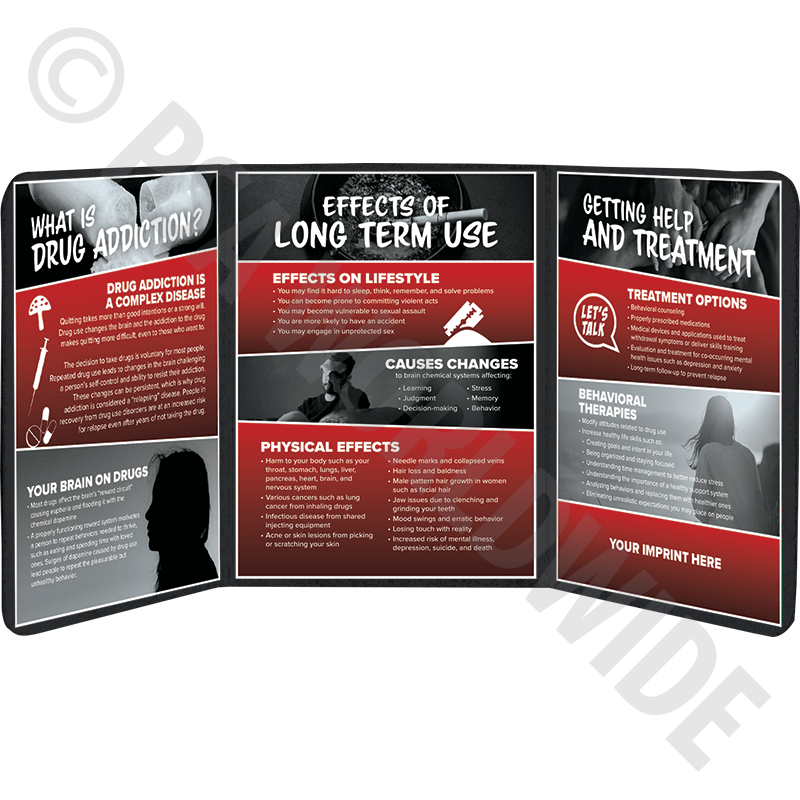 This exclusive table top display includes three panels covering the topics of substance abuse.