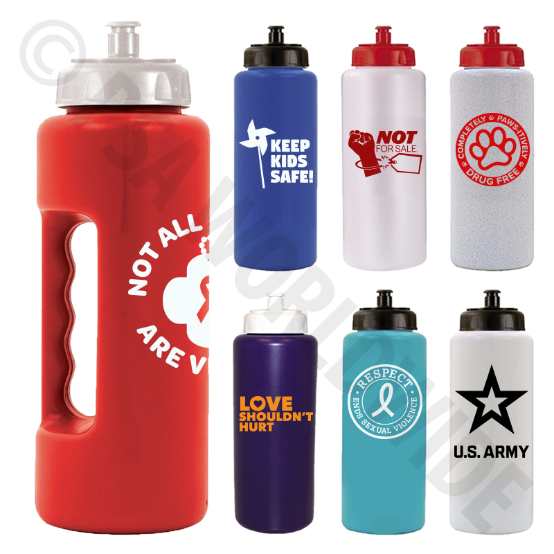 This is the bottle to quench a really big thirst! 32oz bottle has a molded handle for easy gripping, and a pop-top cap for easy sipping. Made in the USA.