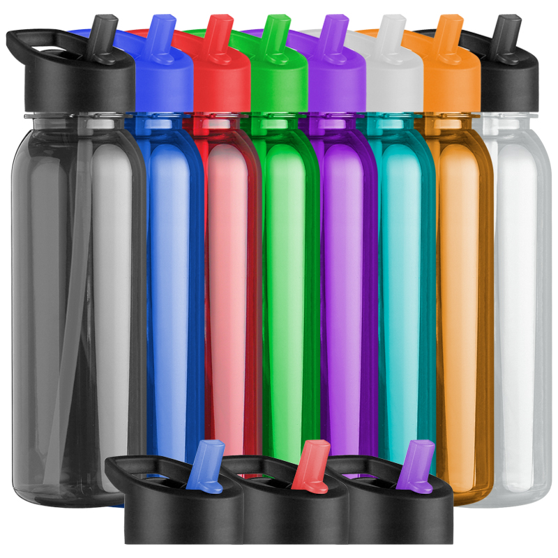 24oz bottle with a wide-mouth and flip straw lid. Dishwasher safe. Made in USA. Add your 1 color imprint to front of bottle.