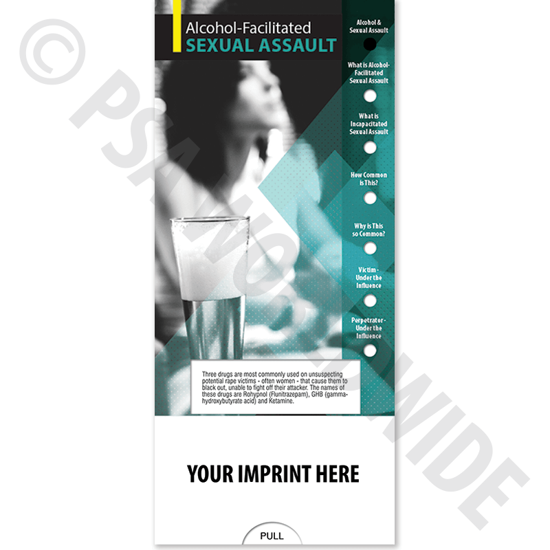 Our sliding reference guide educates on alcohol facilitated sexual assault. Topics include:
