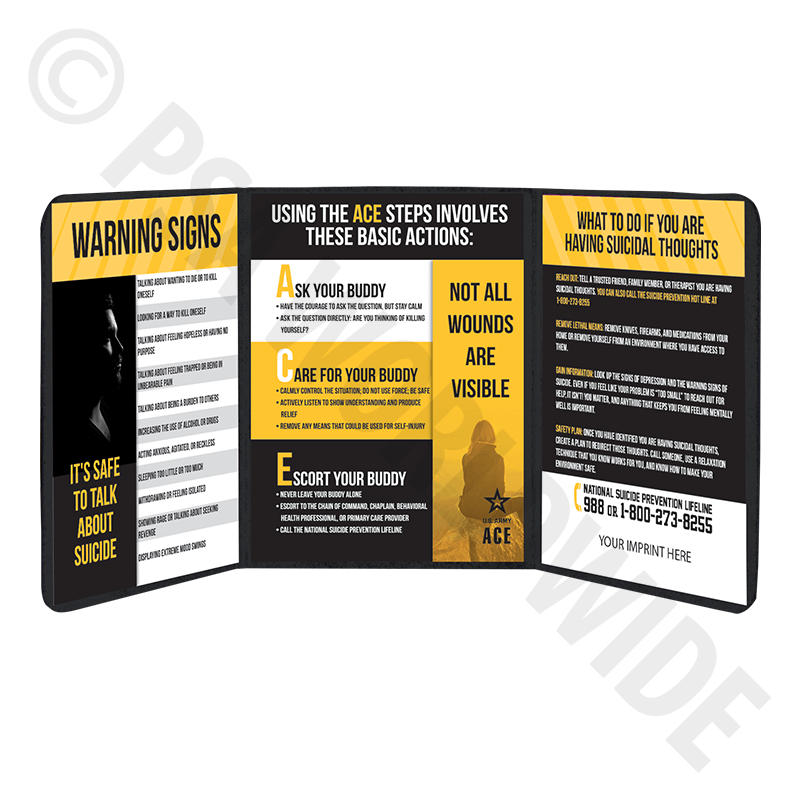 This exclusive table-top display offers 3 panels covering the US Army ACE suicide prevention program. Topics include: