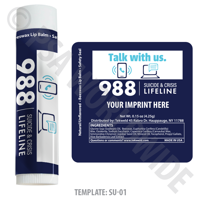 This lip balm is made in America and is FDA compliant and PABA free. Choose your flavor and suicide prevention and awareness template. All templates will be printed on a metallic label. Includes your full-color imprint in one location. **Overseas orders will receive non-SPF lip balm**