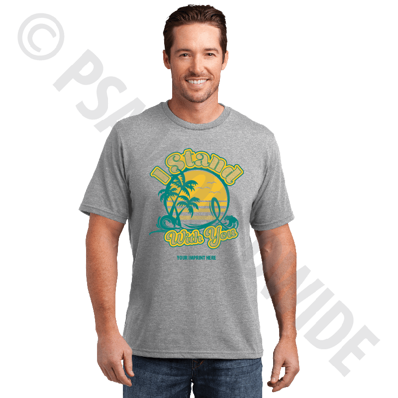 District Made 60/40 blend ring spun combed cotton/poly Unisex t-shirts are great for events, fun runs, or giveaways. T-shirts are an excellent way to promote awareness and prevention for your programs or company. Includes your two-color imprint in one location. Choose your shirt color, size(s), and template.