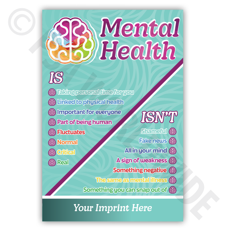 Promote and support positive mental health with our magnet that helps to explain what mental is and is not. Includes your full-color imprint on front of magnet.