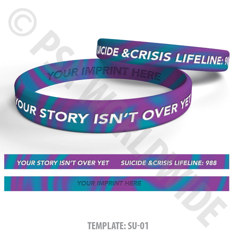 Our new exclusive swirl silicone wristband comes with one of our suicide prevention messages in white deboss on the outside and includes your embossed imprint on inside of wristband. **Maximum of 25 character/spaces for inside imprint**