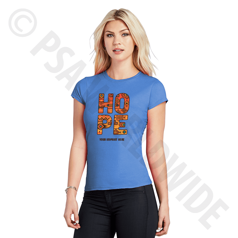The lightweight, women's cut Gildan t-shirt is super soft and made from 100% cotton. Constructed of 4.5 oz. jersey knit, and is pre-shrunk. The T-shirt comes with a full-color digital print transfer in one location. Printed with eco-friendly, water-based inks. Choose your t-shirt color, size, and template. T-shirt comes folded inside a clear polybag. When doing a custom design, it will be printed center chest. For other options, please reach out to your account specialist. Minimum imprint size is 5" x 5". Maximum imprint size is 12" x 12".