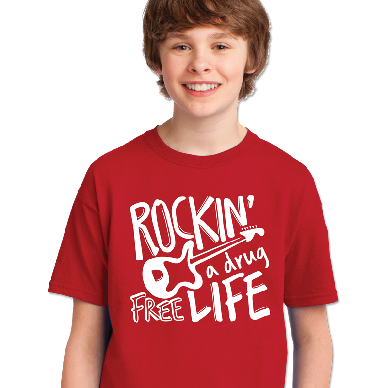 Use our youth Gildan ® 100% cotton, red t-shirt to spread awareness for Red Ribbon events. T-shirt is six ounces, 100% US cotton and comes with taped neck and shoulders. Features a classic fit and a recycled tear-away tag. Choose the template that best suits your needs. Shirt comes with your one-color imprint in one location.