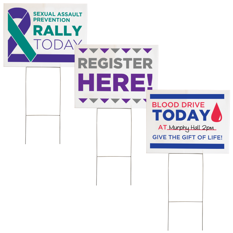 These corrugated, plastic signs can have a 2 color imprint on both sides, perfect for drawing attention to your campaign or event.