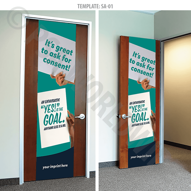 Our graphic printed, full-color door wrap has endless uses. Two-way, poly-blend material stretches to wrap door. Fits most standard 80" tall doors and is easy to install. Wrap is double sided and you can choose different templates for each side. Includes your full-color imprint on both sides. Imprints can be different. **For templates containing repoting options, the customer will need to confirm the accuracy of the content.**