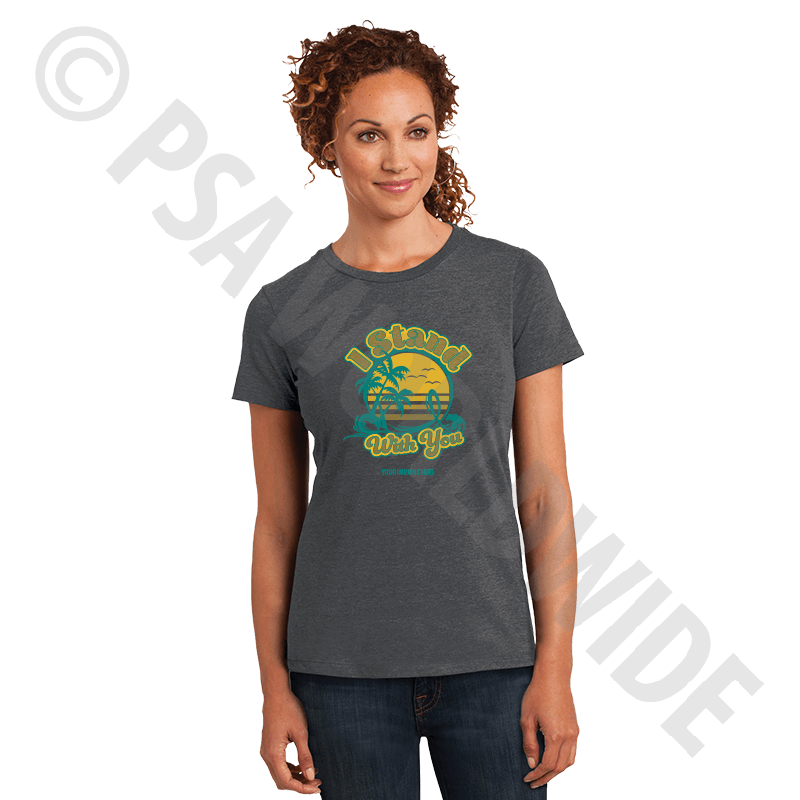 District Made 60/40 blend ring spun combed cotton/poly women's t-shirts are great for events, fun runs, or giveaways. T-shirts are an excellent way to promote awareness and prevention for your programs or company. Includes your two-color imprint in one location. Choose your shirt color, size(s), and template.